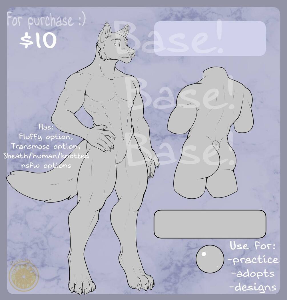 Masculine Canine Base! Has various bits options, has a fluffy version, and has transparency lock for ease of coloring. Can use for adopts, designs, and most anything you can imagine.
